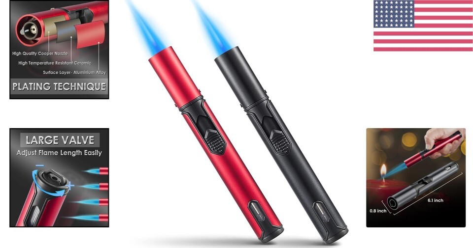 Professional 6-Inch Butane Torch Lighter Set - Adjustable Flame for BBQ & More