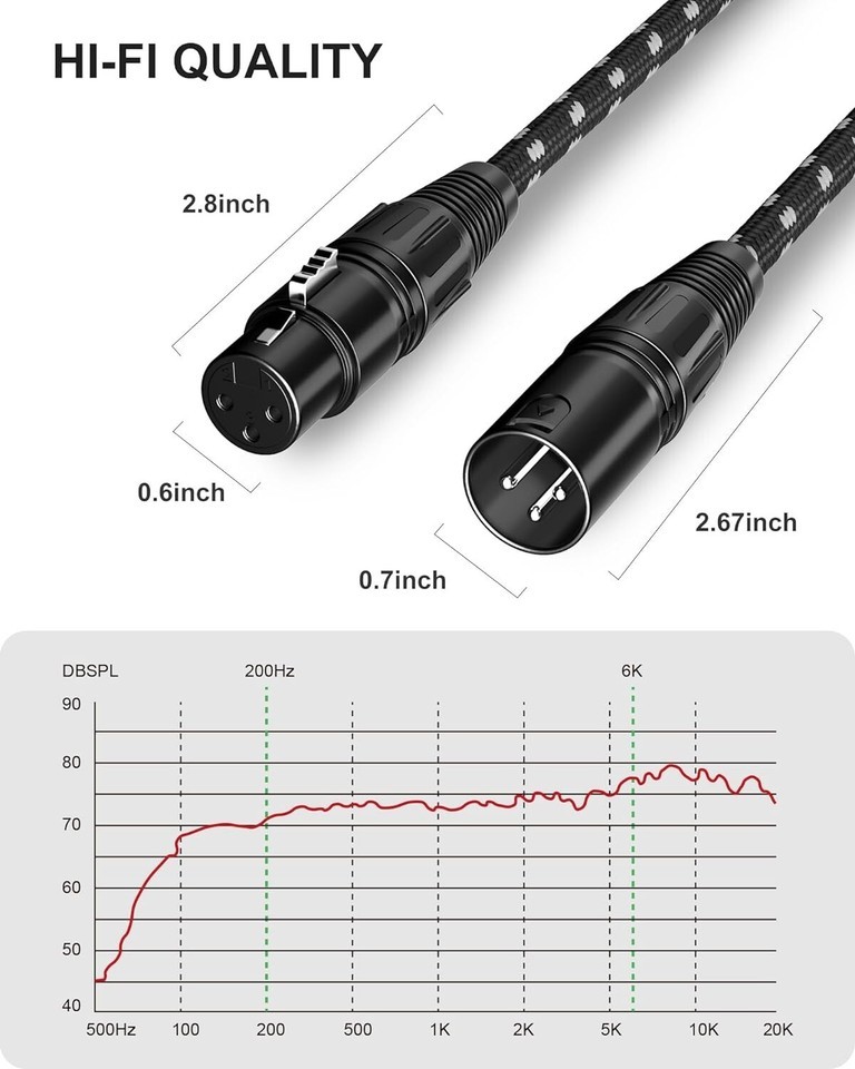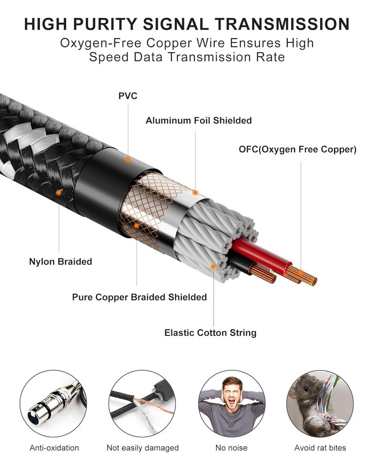 Flexible Nylon Braided: Built for superior flexibility and resilience, our microphone cable withstands over 10,000 bends without compromising performance. The tangle-free nylon braided material is both wear-resistant and long-lasting.