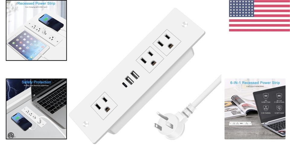 Compact Drawer Outlet with 6-in-1 Features: USB-C and QC 3.0 for Workspaces