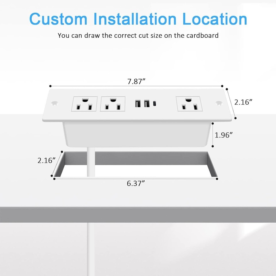 Elevate your work environment with our innovative featuring 3 AC outlets, 2 fast charging USB-A ports (QC 3.0), and 1 USB-C port (PD 3.0). Designed to blend seamlessly into your conference room, home desk, or any public space, this compact drawer outlet is the epitome of grace and functionality.