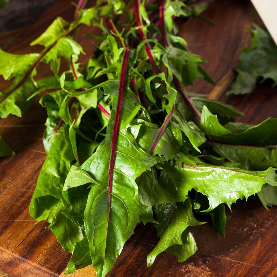 Transform your garden and your plate with the visually captivating Garnet Stem Dandelion. Its vivid, deep red to garnet-colored stems create a stunning contrast against the lush green leaves, making it a true work of art in any garden.