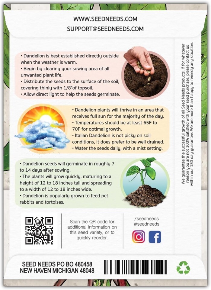 Elevate your gardening and culinary experience with our exquisite Garnet Stem Dandelion seeds. Perfect for enthusiasts and the environmentally conscious, these non-GMO heirloom seeds promise a bountiful yield of edible beauty. Whether you?re looking to enhance your garden aesthetics or add a unique flavor to your dishes, these seeds are your perfect choice.