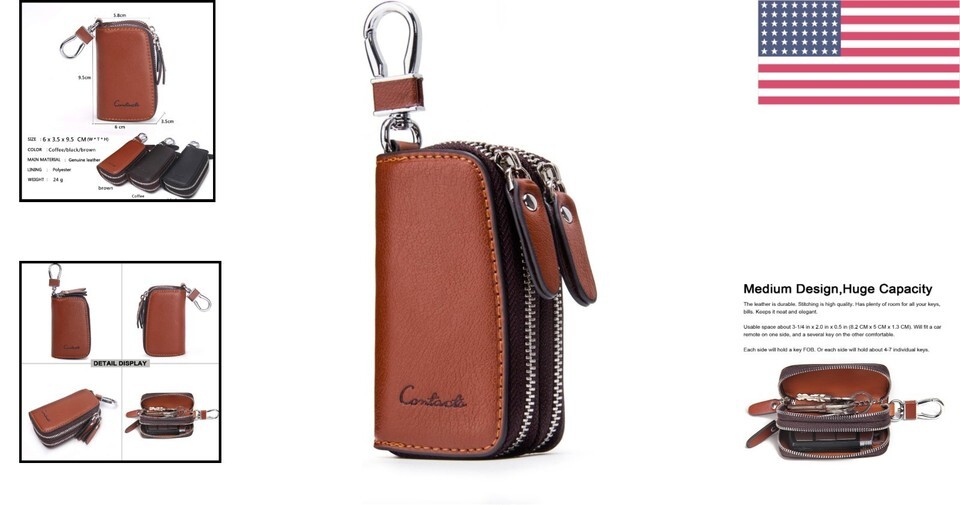 Thoughtful Design: The double zipper closure features independent layers to separate your car keys from home keys and coins, preventing unwanted friction.