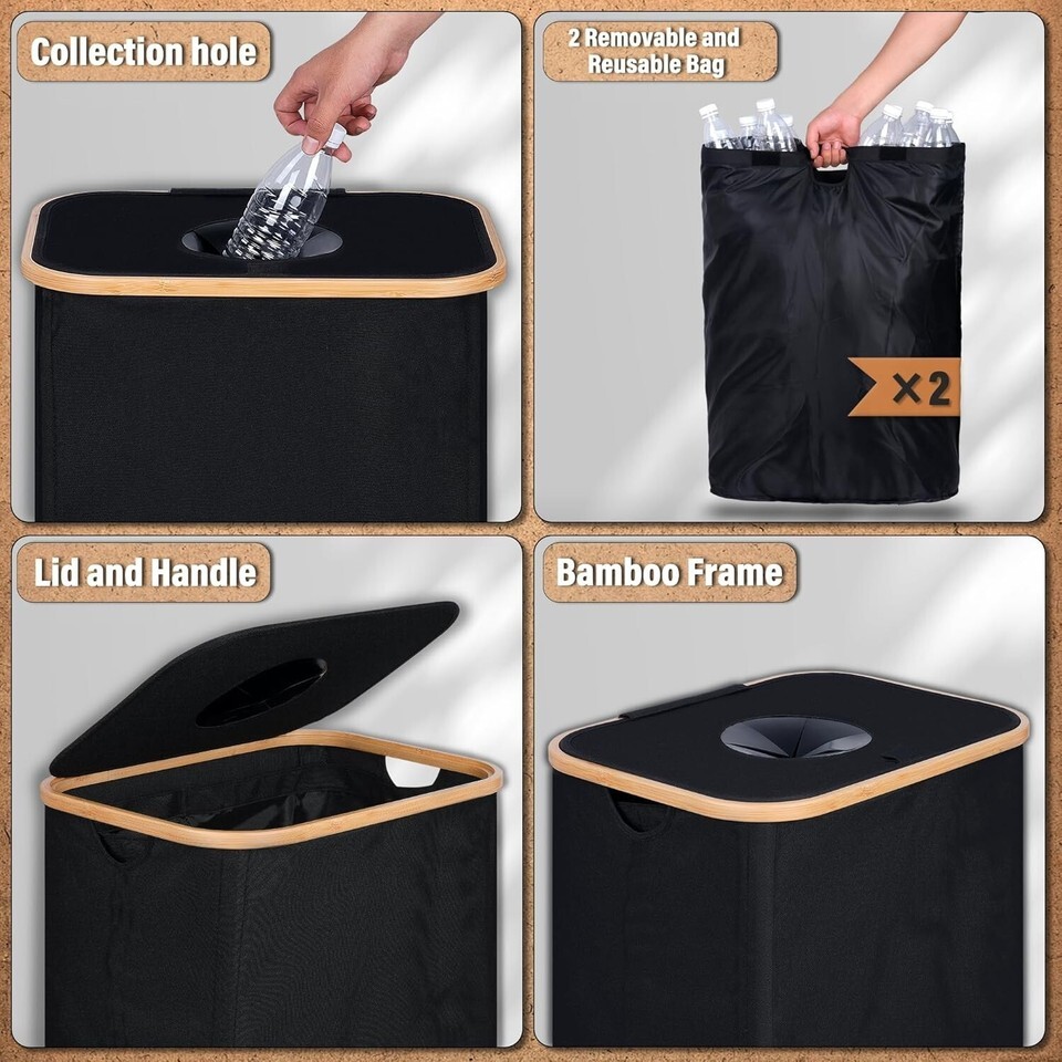Elevate your recycling game with our elegantly designed bin equipped with a stylish bamboo handle. Not only does it provide a generous 100L capacity, but its sophisticated look makes it a perfect addition to your home decor. Enjoy the convenience of reusable inner bags and an innovative lid that facilitates easy recycling. Say goodbye to clutter and hello to a cleaner, more organized space while championing sustainable living. Order your Stylish Black Recycling Bin today and make recycling a chic part of your lifestyle!