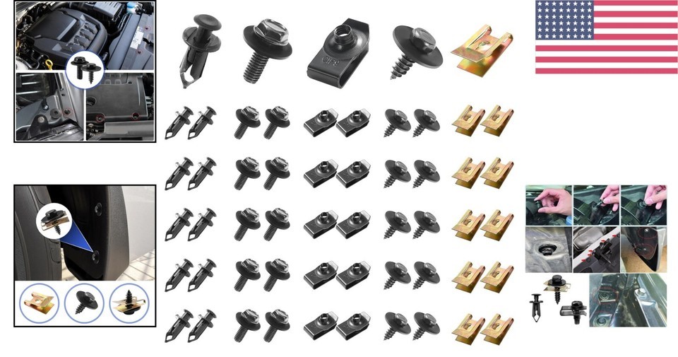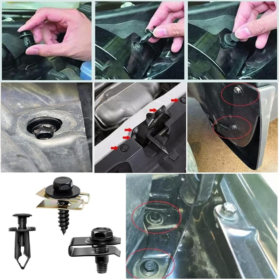 Universal 100PCS Car Fasteners Kit - Metal Bolts U-Clips for Easy Installation