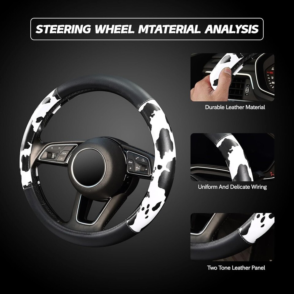 Don't settle for ordinary ? upgrade your ride with our Fashionable Cow Print Steering Wheel Protector today!