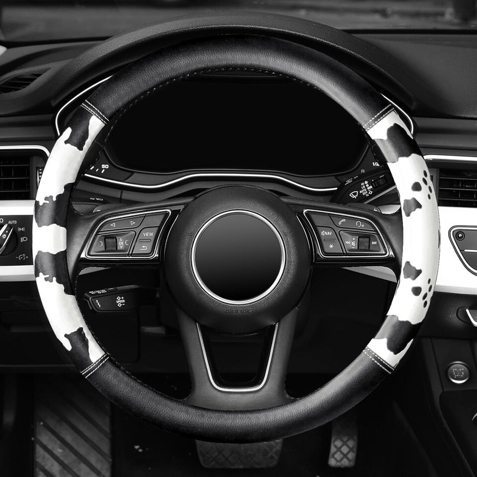 Fashionable Cow Print Steering Wheel Protector - Universal Fit for Most Vehicles
