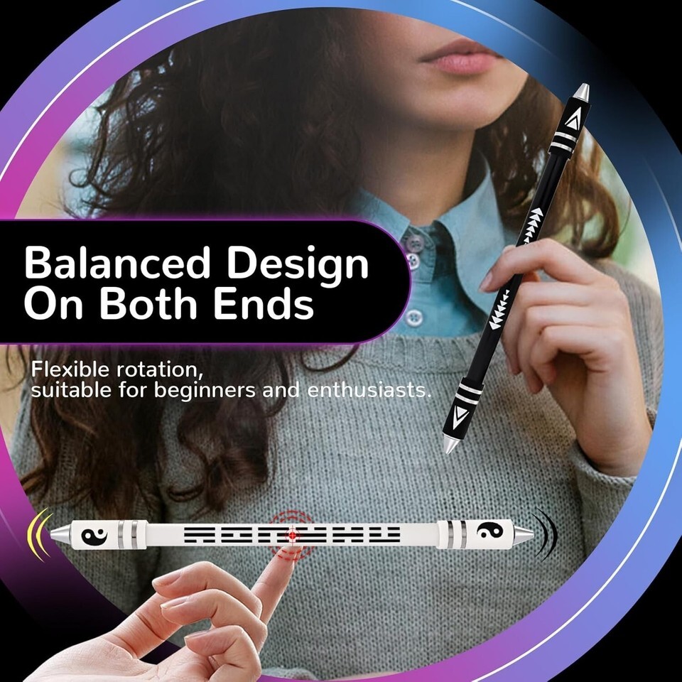 8.5-Inch Non-Slip Finger Spinning Pen with Shatter-Proof Tips - Black & White