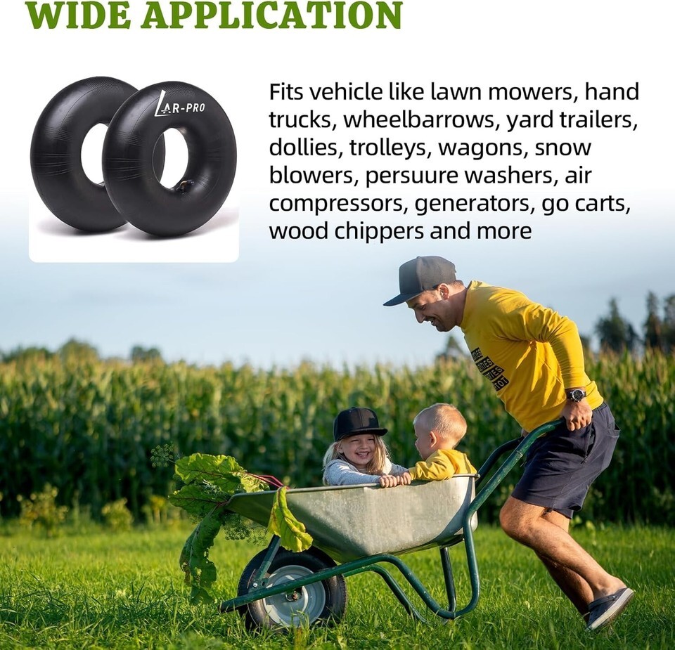 Upgrade your vehicle's performance and safety with our Heavy Duty Replacement Inner Tubes, designed to fit a variety of applications including lawn mowers, hand trucks, wheelbarrows, yard trailers, dollies, trolleys, wagons, snow blowers, pressure washers, air compressors, generators, go-carts, wood chippers, and more!