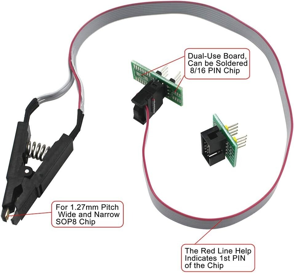 SOIC8 Clip Design: Enables in-circuit programming without the need to disassemble the chip.