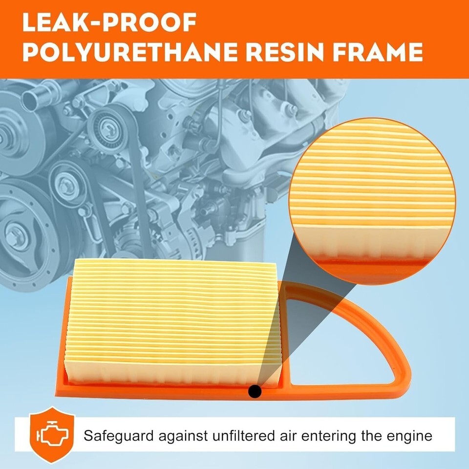 Leak-Proof Sealing Design: Crafted using a leak-proof polyurethane resin frame, this air filter seamlessly fits to prevent unfiltered air from entering the engine, ensuring durability and longevity.