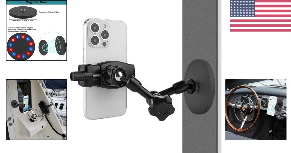 Heavy Duty Magnetic Phone Holder for Trucks & Vehicles - 360° Adjustable Arm