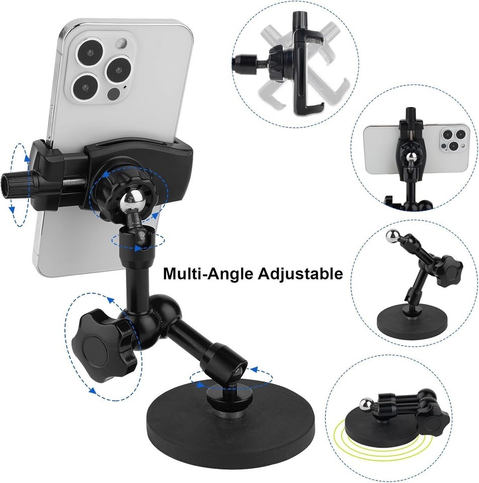 Sturdy Firm: Rubber-coated magnetic base protects surfaces while ensuring a solid grip, and the aluminum alloy articulating arm guarantees durability. The ABS phone clip is fitted with anti-skid rubber pads to prevent scratches.
