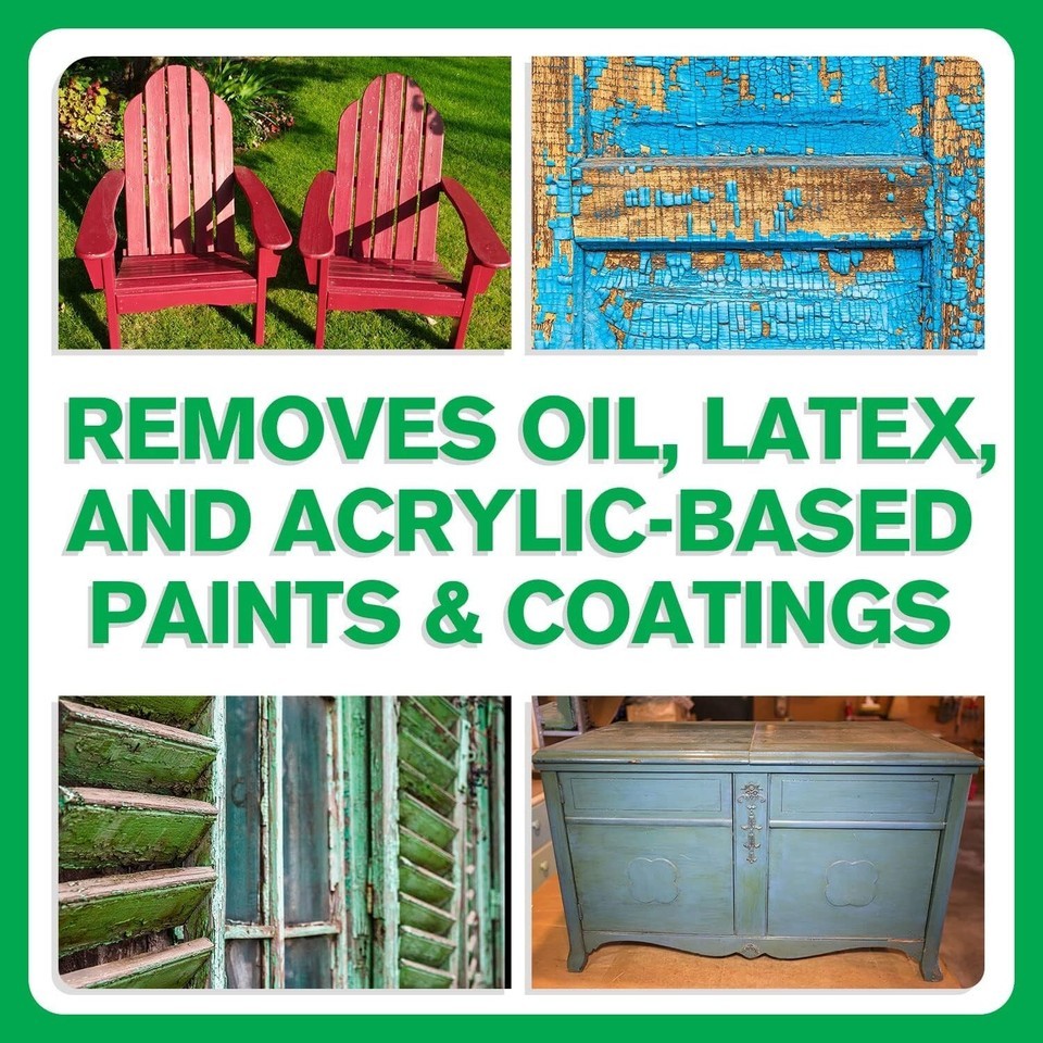 Strips Acrylic, Latex, Oil, and Water-Based Paints, Varnishes, Stains, and Coatings.