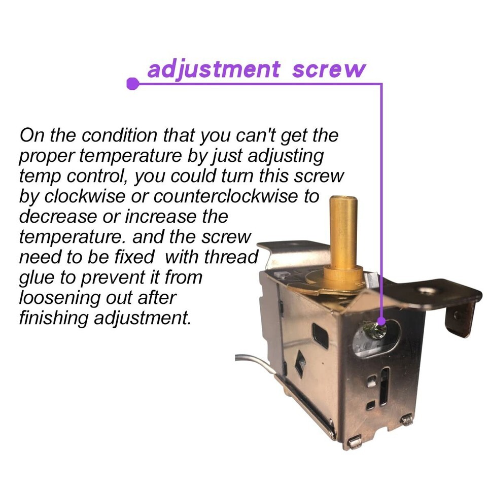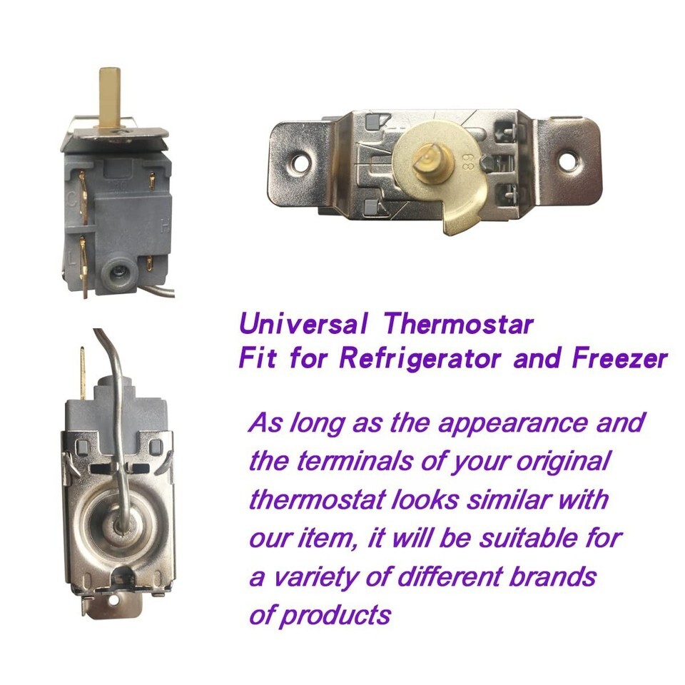 Upon receipt, if the thermostat does not fit perfectly, minor modifications can be made to ensure compatibility (mounting brackets, electrical terminal connectors, etc.). This thermostat is suitable for both refrigerators and freezers; simply adjust the screw on the back to set it to your desired temperature.