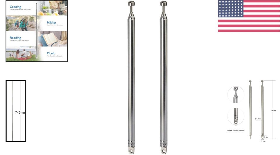 2-Pack 74cm Stainless Steel Telescopic FM AM Antenna for Enhanced Reception