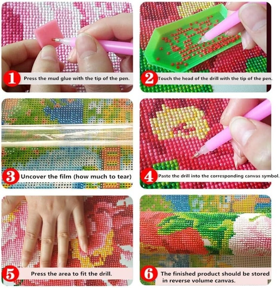 DIY Production: Simple steps for creation: place the same diamond into the tray, use the pen to pick it up with adhesive, and place it on the corresponding number on the canvas.