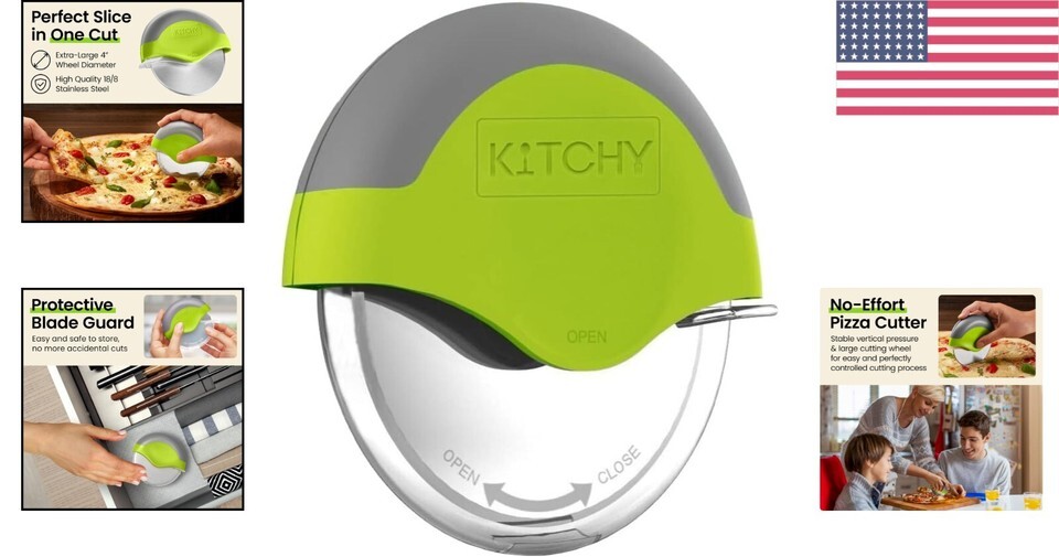 Compact Ergonomic Pizza Cutter with Dishwasher Safe Blade Guard - Green Design