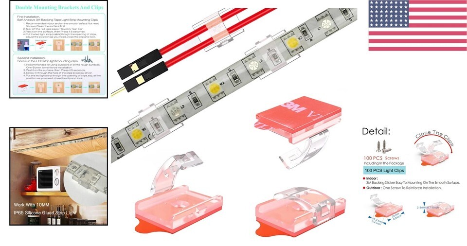 Illuminate your world effortlessly?order your 100-Pack Clear Self-Adhesive LED Strip Light Clips today!
