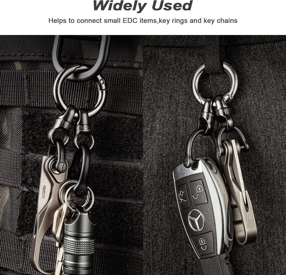 Features: Detachable Keyring,Strong and Durable,Lightweight,Corrosion resistance,High temperature resistance,Super durable,Heavy duty,Doesn't add bulk to keychain,360 degree swivel key rings,Heavy duty connector,Lightweight: 0.07 oz,Finely polished,Smooth surface,Perfect for hanging keys,Wide appliance,Connecting small parts,Can be used for clasps,Necklaces,Jewelry,Tags,DIY crafts