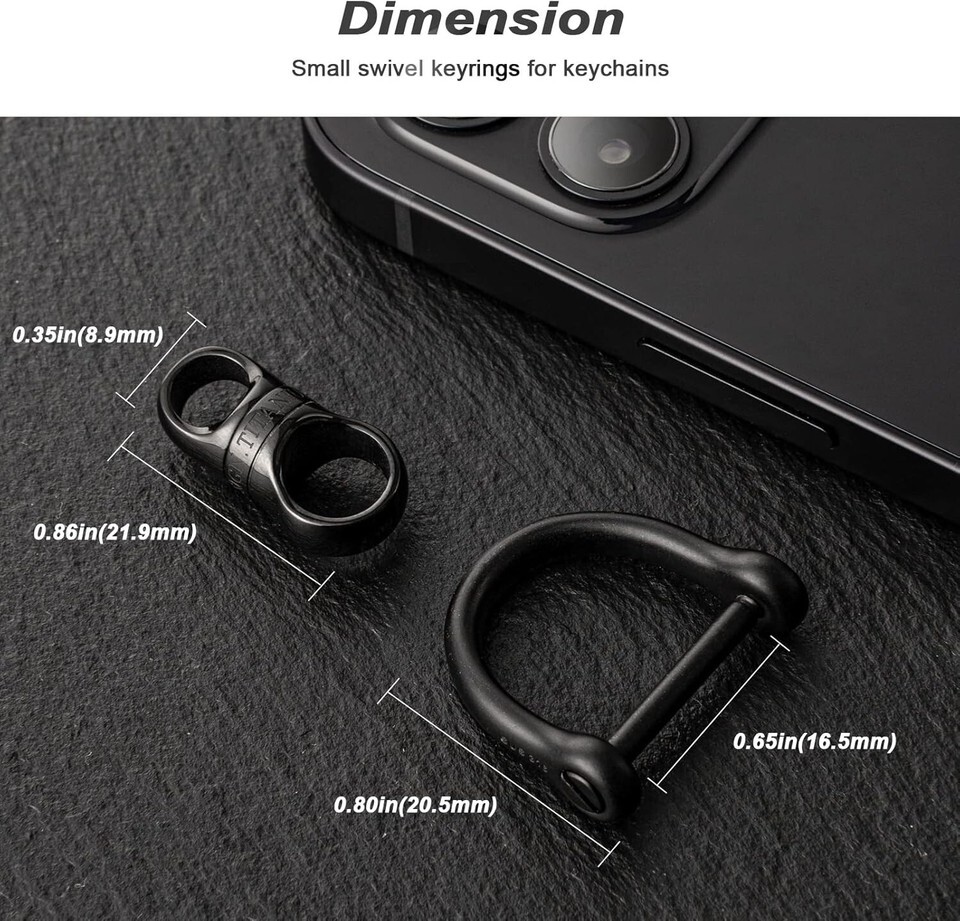 Doesn't Add Bulk: The 360-degree swivel design prevents tangles, keeping your keychain elegantly simple. Connector size: 0.86 in (22 mm) 0.34 in (8.9 mm), with a weight of merely 0.07 oz.