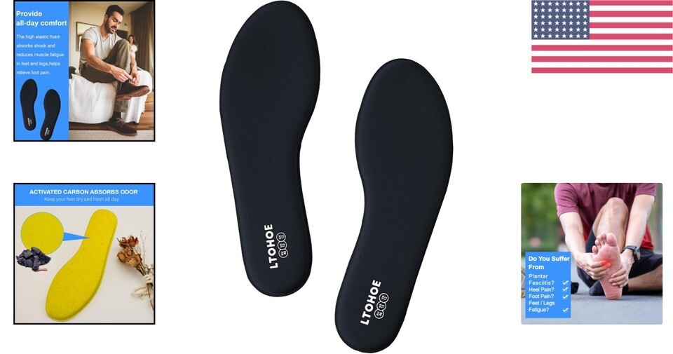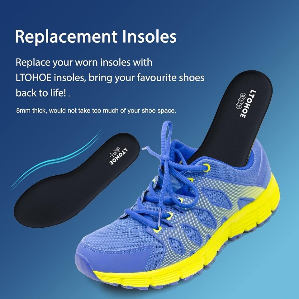 Imagine stepping into your favorite sneakers or boots, and feeling a cloud of comfort beneath your feet. Our Men's 8mm Memory Foam Insoles are designed to breathe new life into well-worn shoes, offering unparalleled shock absorption and support. The memory foam contours perfectly to your foot, providing custom comfort, while the active carbon particles keep your feet feeling fresh all day long.