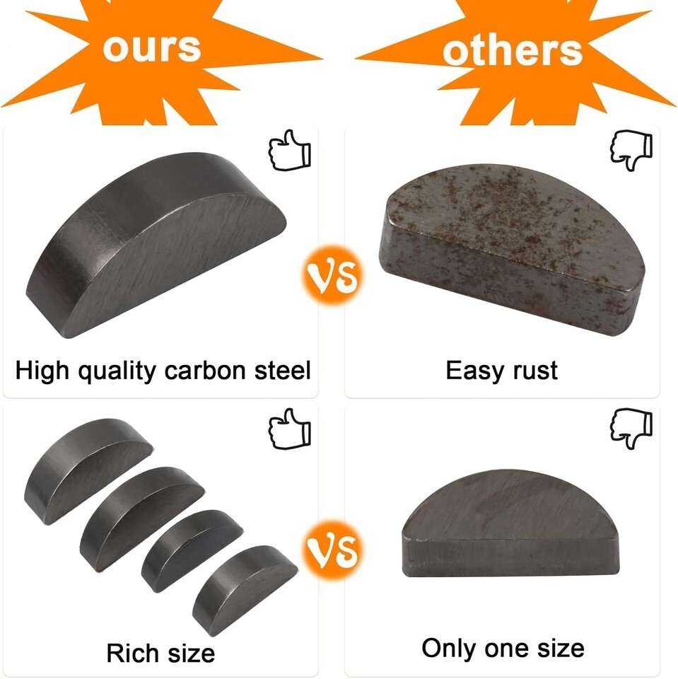 High-Quality Materials: Each woodruff key is crafted from high-hard carbon steel, providing maximum strength and durability to withstand wear and tear.