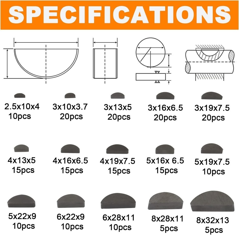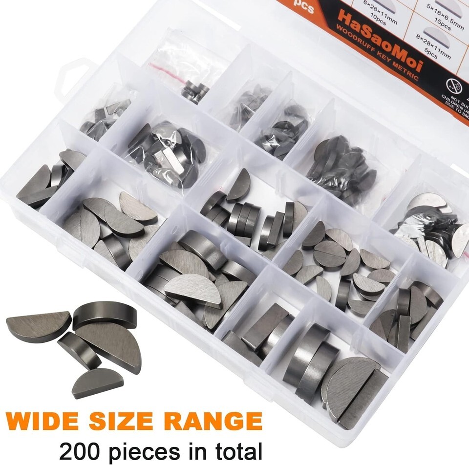 Comprehensive Assortment: Our kit includes 200 pieces of semi-circle woodruff keys in 15 different sizes, ensuring you have the right size for any job at your fingertips.