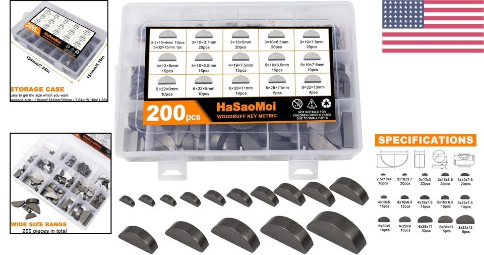 Don?t settle for anything less than the best. This 200-piece Woodruff Key Assortment Kit is not only comprehensive in its options but also crafted from high-quality materials to ensure unmatched durability. Whether you?re tackling a DIY project or performing professional repairs, the precision-engineered keys will provide the reliability you need.