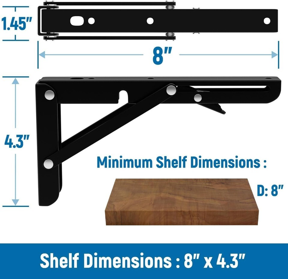 Versatile 8 Inch Heavy Duty Folding Brackets - Ideal for Stylish Storage, 2 Pack