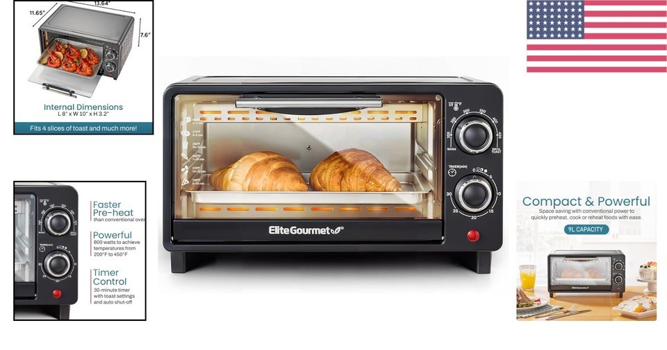 Compact 9L 4 Slice Toaster Oven with 30-Minute Timer ? Matte Black Innovation