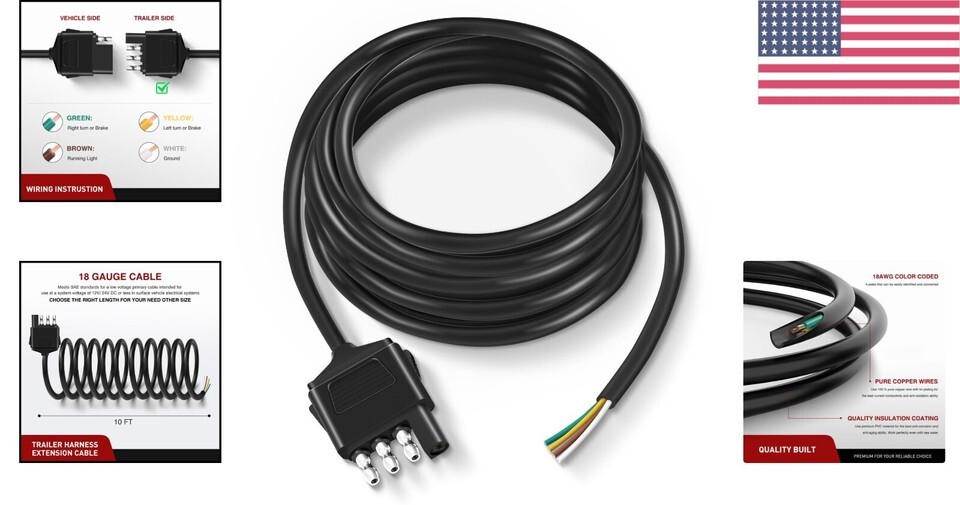 Convenient Installation: Our 4-pole flat connector comes complete with blunt-cut, color-coded wires, making it simple to splice into your existing trailer wiring.