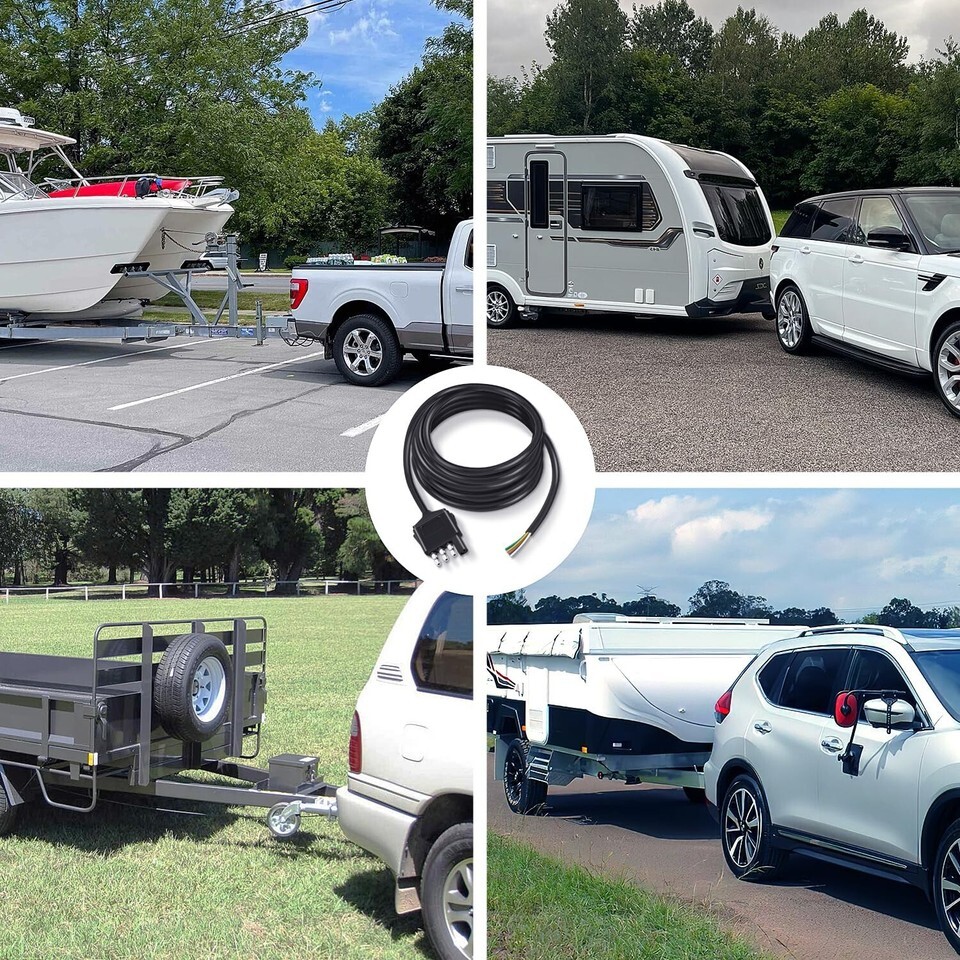 Flexibility: Equipped with a 4-way flat plug connector, this trailer wire extension offers ample length for versatile installation, ensuring compatibility with various trailers including marine boat trailers, horse trailers, motorcycle trailers, and ATV trailers.