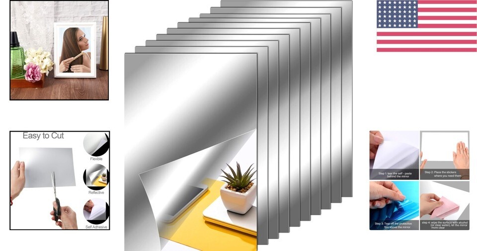 Reflective Self-Adhesive PET Mirror Tiles ? 10 Thin Pieces for Stylish Walls