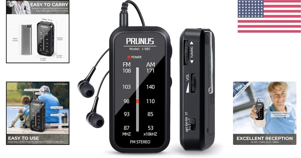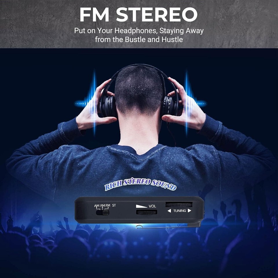 Classic Pocket AM FM Radio with Back Clip and Headphones - Ideal for Adventures