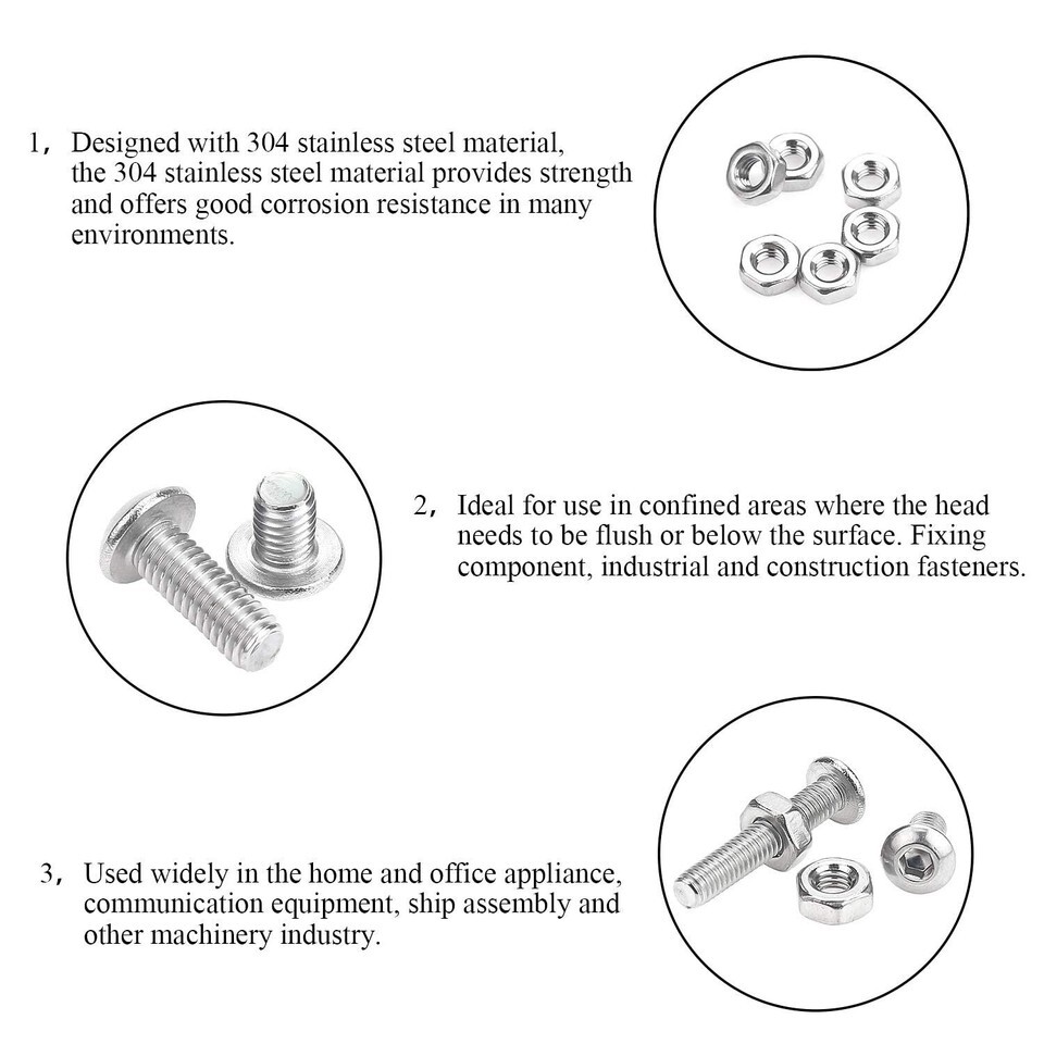 Order your 304 Stainless Steel Hex Button Head Screws Nuts Kit today and elevate your DIY projects to a new level of excellence!