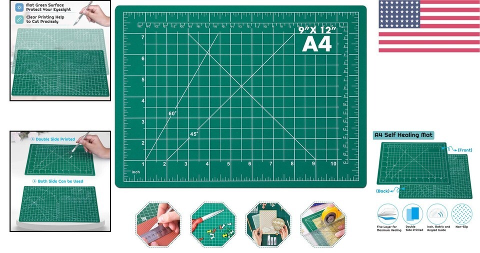 Features: Self-Healing,Double-Sided,Measurements Printed,Lightweight,Compatible with Rotary Cutters,Angled Grid Lines,Prevents Cutter Blade Damage,Reseals Surface Cuts,Lightweight and Portable