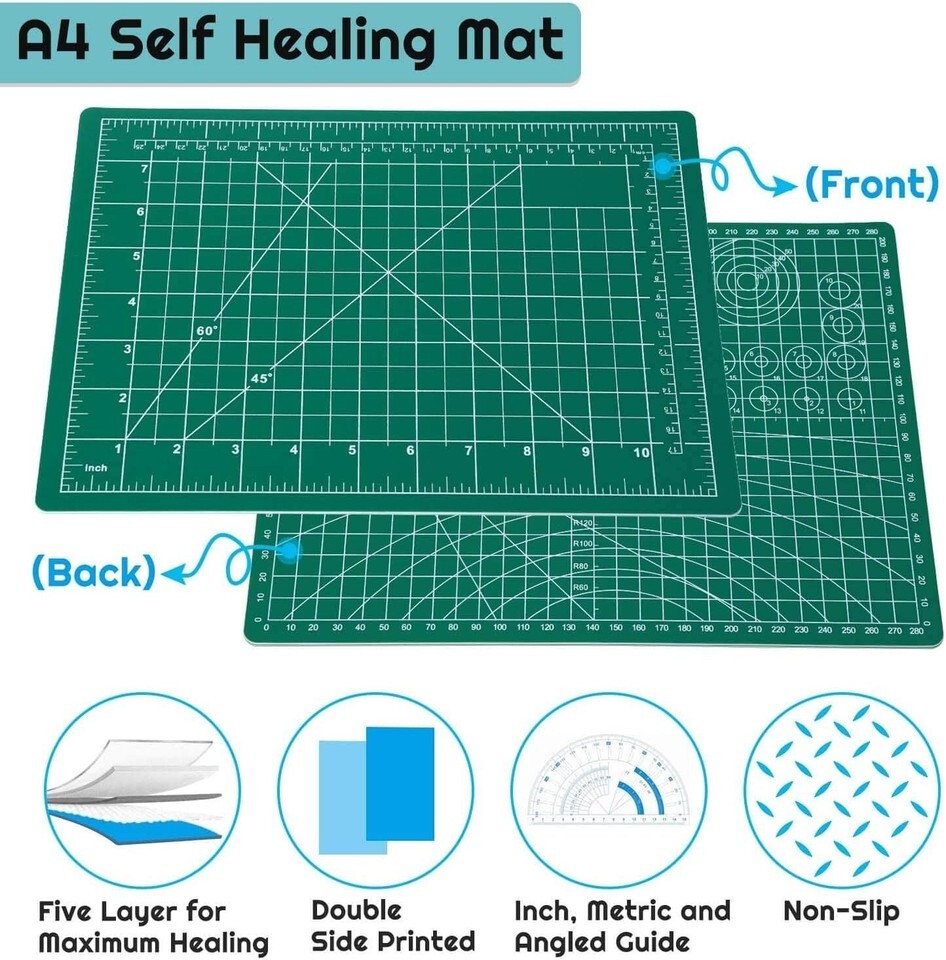 SELF HEALING CUTTING MAT: Crafted from 5-layer PVC material, with a special white hardness layer in the middle to prevent cutting through.