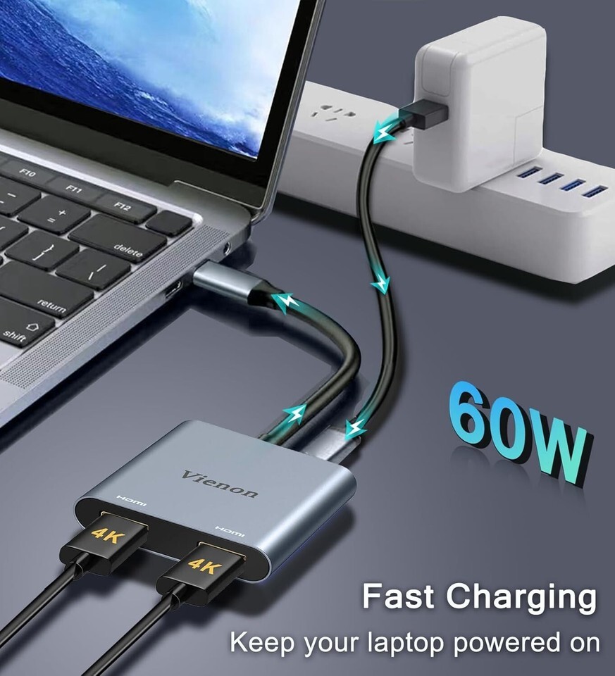 Type C to Dual HDMI Hub: Stream media on two screens simultaneously for an expanded workspace or captivating entertainment sessions.