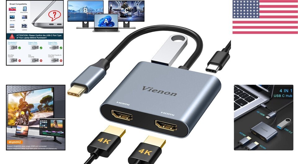 Dual HDMI Adapter 4K@60Hz USB C Hub with and similar items