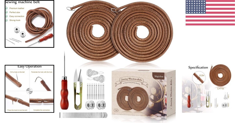 Elevate your sewing experience with our Leather Treadle Sewing Machine Belts, designed for both durability and ease of use. This essential accessory set includes everything you need to get your vintage sewing machine back in working order, ensuring that your creative projects can flourish.