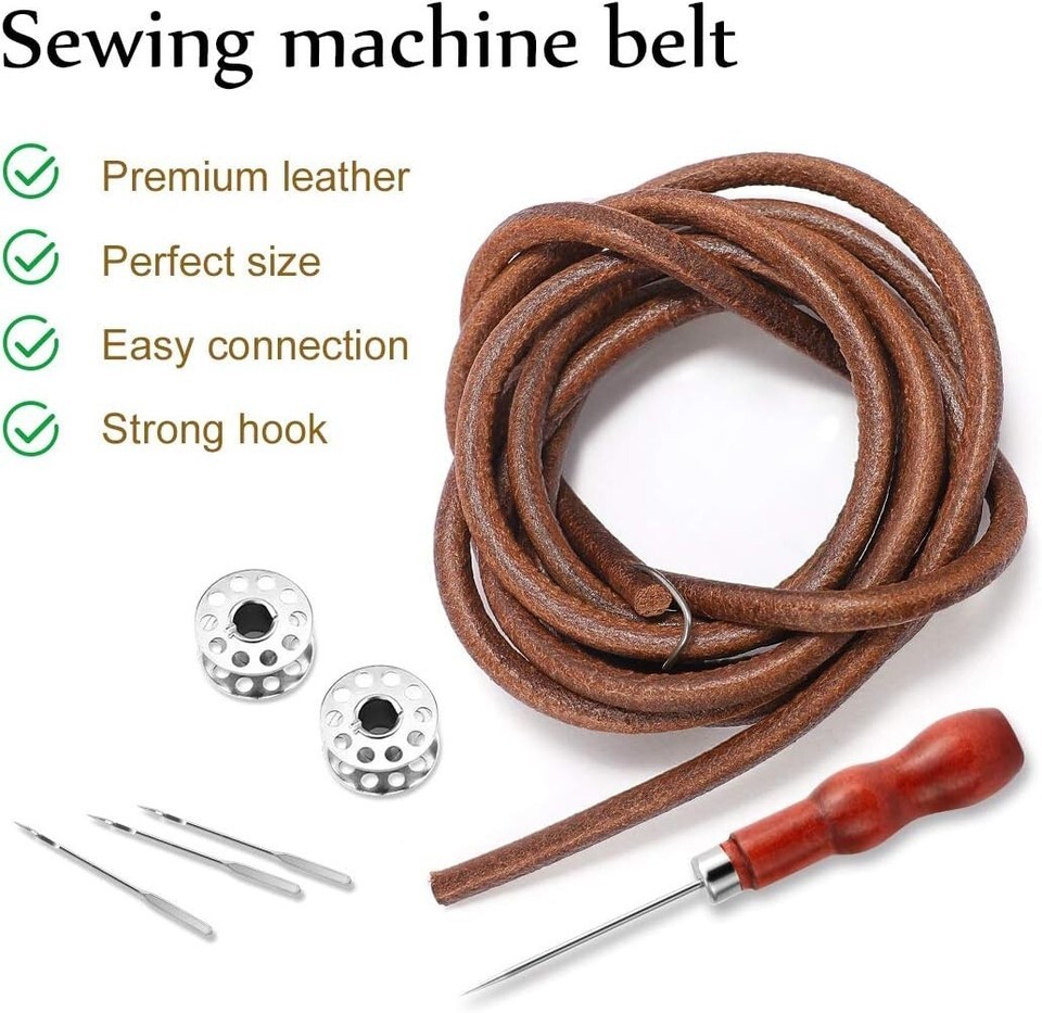 Leather Treadle Sewing Machine Belts (2-Pack) - Easy Install with Accessories