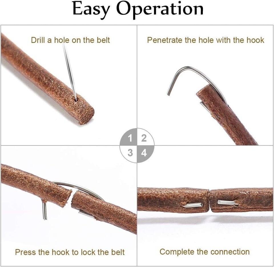 Installation is a breeze: Measure and cut to your desired length, drill a hole at the end of the belt, insert the metal hook, and tighten.