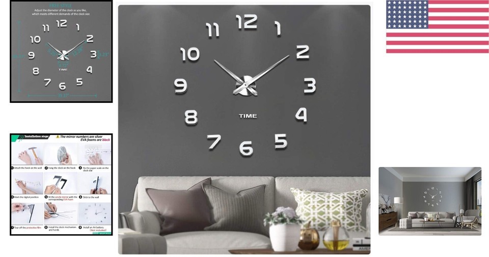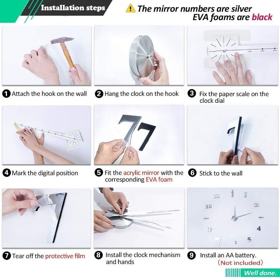 Features: Silent/No Ticking,Frameless,Self-adhesive numbers,DIY reference case,User Install guide