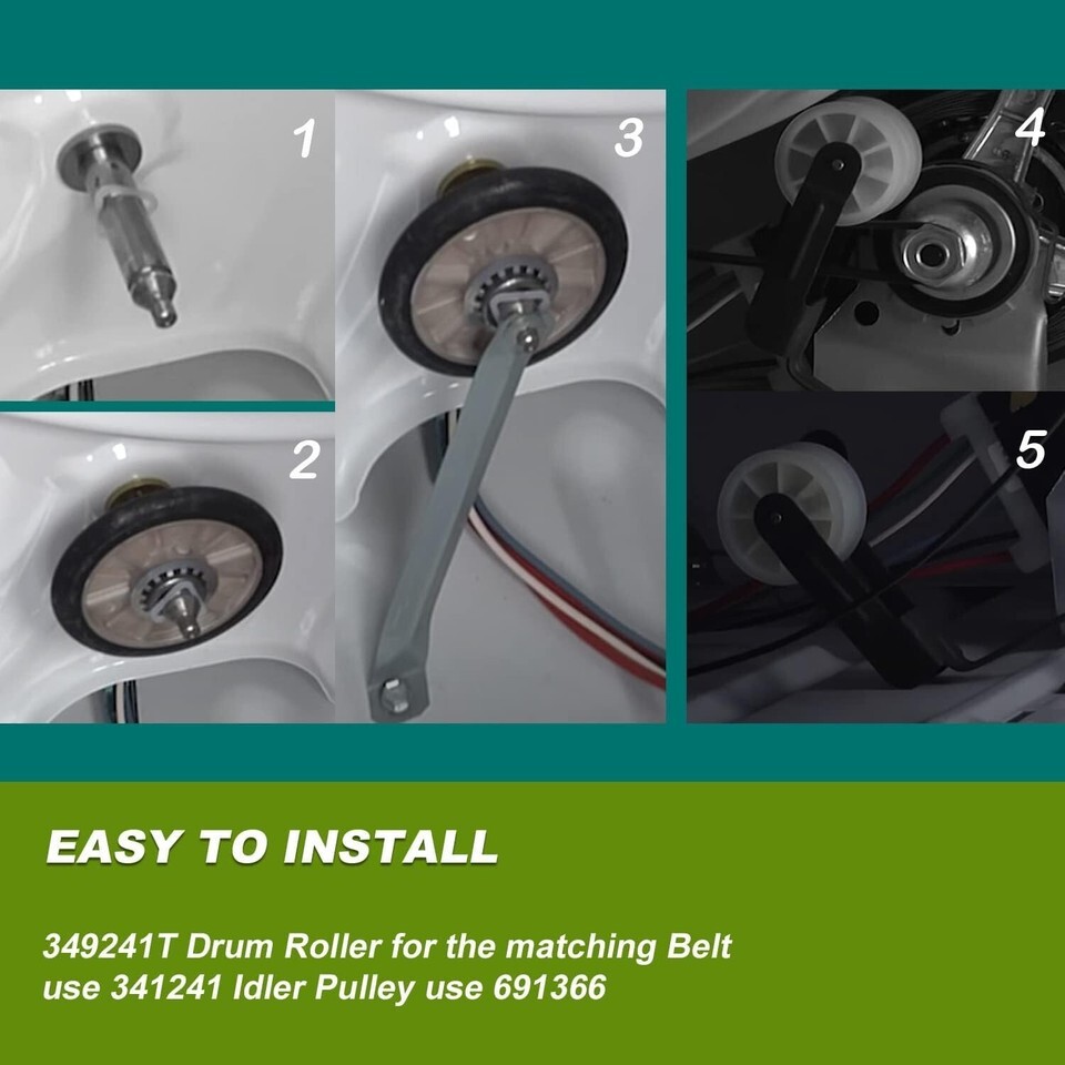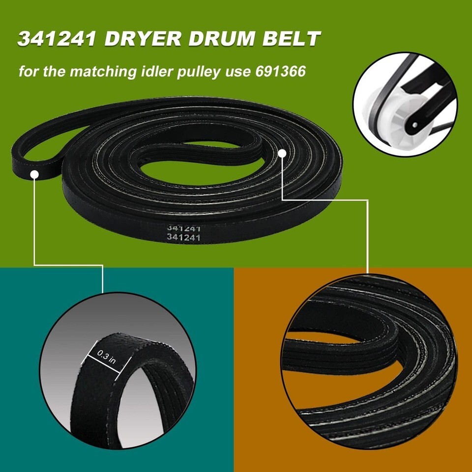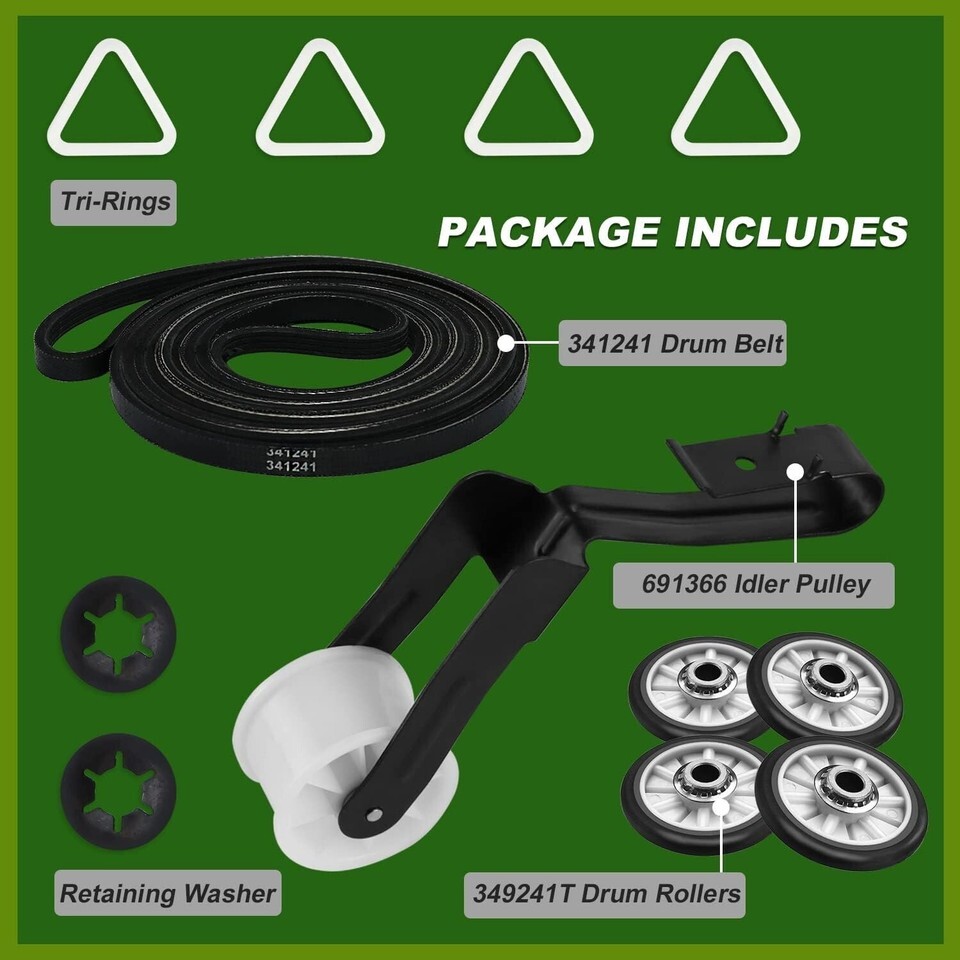 Set Includes: Drum Drive Belt,341241 Drum Drive Belt,349241T Support Roller,691366 Idler Pulley