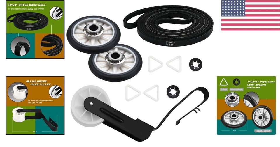 Complete Drying Solution: Drum Belt, Roller Pulley Kit for Kenmore Whirlpool