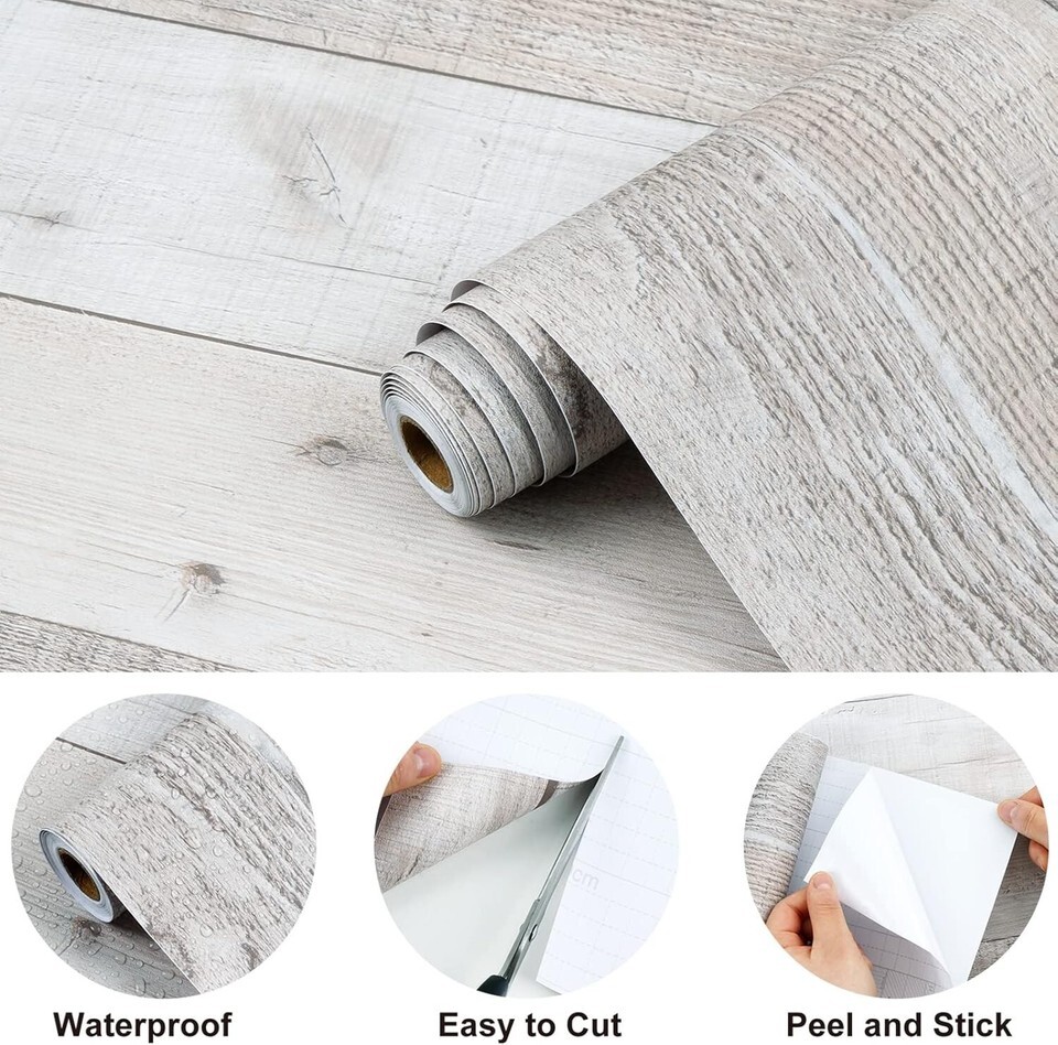 Durable Self-Adhesive Grey Wood Contact Paper - 14.5 Sq.Ft Transformations