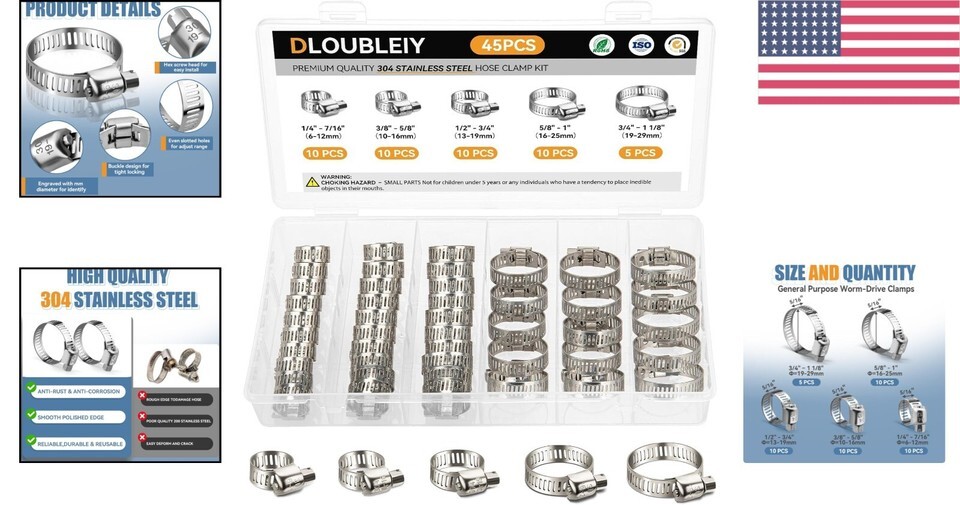 35PCS Adjustable Stainless Steel Hose Clamp Kit – Versatile for Plumbing & Auto