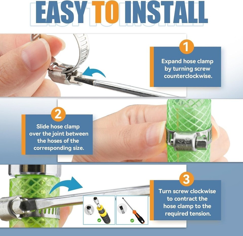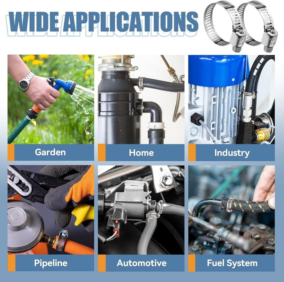 Versatile Applications: Ideal for plumbing, automotive, and mechanical uses. Perfect for pipe clamps, fuel line clamps, and duct clamps, tailored for both DIY enthusiasts and professionals.