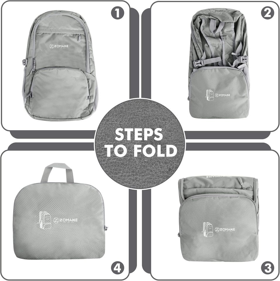 Portable Lightweight: Weighing just 0.74lbs and measuring 19 x 13 x 7 inches when open, this compact foldable backpack easily compresses down to 10 x 8 x 3 inches for effortless storage.